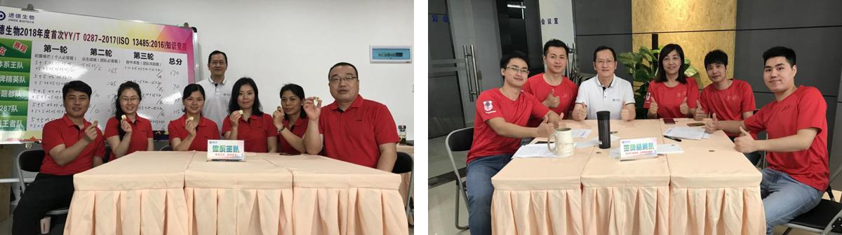 On April 1st, the first competition of ISO 13485:2016 (YY/T 0287-2017) for all the Jinde staff was held in Guangzhou Science Park,we divided into 5 groups for the match.