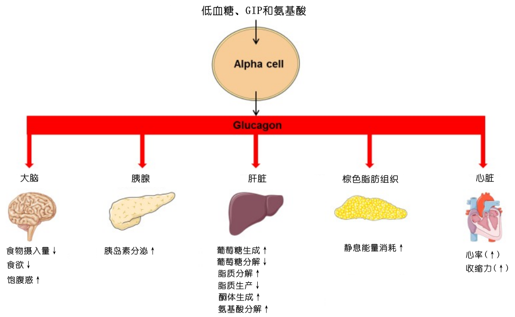 胰高血糖素是一種葡萄糖調(diào)節(jié)激素,它通過刺激肝臟產(chǎn)生葡萄糖來抵消胰島素的作用,從而提高血糖水平。胰高血糖素能介導(dǎo)幾種非葡萄糖代謝作用,這些作用包括通過肝臟脂肪分解和酮體生成調(diào)動(dòng)能量資源、刺激肝臟氨基酸代謝以及相關(guān)的尿素生成。