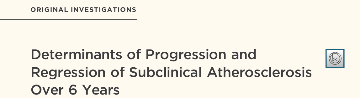 于2023年刊登于《美國心臟病學(xué)會雜志》(JACC)上的研究顯示:如果在中青年時就開始采取預(yù)防性干預(yù)措施,動脈粥樣硬化斑塊有“消退”的可能,且如果能從疾病早期控制風(fēng)險因素,則可實現(xiàn)動脈粥樣硬化疾病的早期“治愈”(即斑塊的完全消退)。