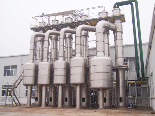 各效蒸發(fā)器、各效分離器、冷凝器、熱壓泵、真空及排水系統(tǒng)、各效料液輸送泵、操作平臺(tái)、電器儀表控制柜及閥門、管路等系統(tǒng)組成。