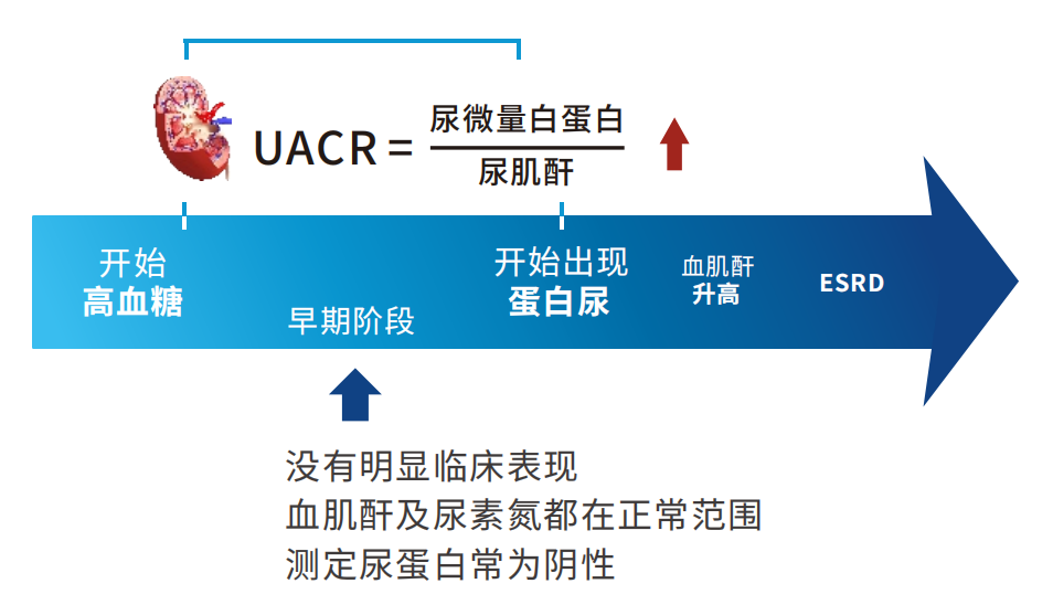 推薦診斷指標(biāo):隨機尿測定UACR(尿白蛋白/肌酐比值);推薦所有T2DM患者和病程5年以上的1型糖尿病患者每年應(yīng)至少進(jìn)行1次UACR檢測,以便早期發(fā)現(xiàn)DKD。